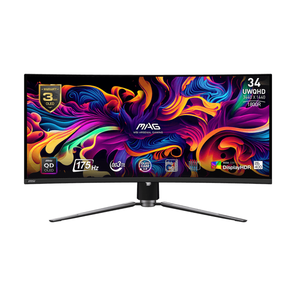 MSI MAG 341CQP QD-OLED | 34″ Curved 175Hz UWQHD Gaming Monitor