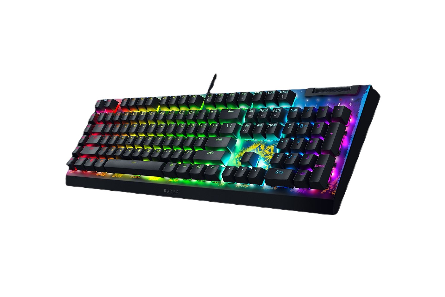 A full-sized mechanical gaming keyboard designed for Fortnite enthusiasts, featuring Razer™ Yellow Mechanical Switches for smooth and silent keystrokes, Razer Chroma™ RGB lighting, six dedicated macro keys, and a multi-function roller for enhanced control.